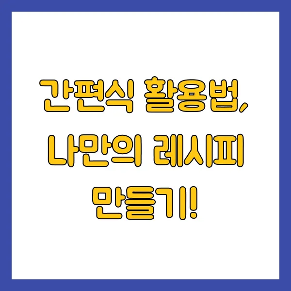 간편식을 활용한 다양한 레시피들을 공유하고, 서로에게 영감을 주는 것도 좋을 것 같아요! 나만의 특별 레시피가 있다면 댓글로 공유해 주세요~? ^^ 다 함께 더욱 맛있고 즐거운 간편식 생활을 만들어 가요~!!