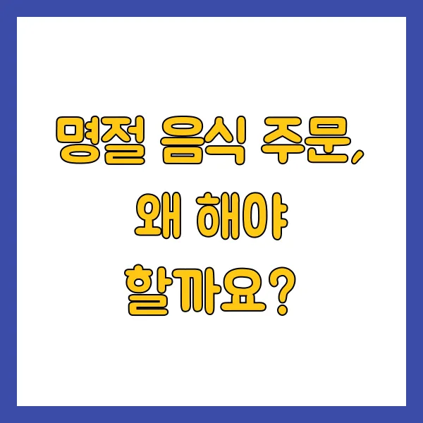 명절 음식은 미리미리 준비하는 것이 중요해요! 너무 늦게 주문하면 원하는 메뉴가 품절되거나, 배송이 지연될 수 있거든요. 최소 2~3주 전 에는 주문하는 것을 추천드려요! 특히 추석이나 설날 같은 대목에는 더 서두르는 것이 좋겠죠?🚀