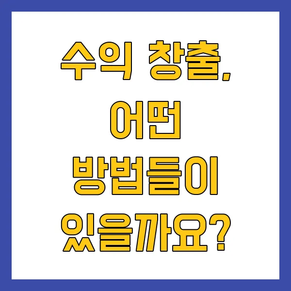 수익 창출, 어떤 방법들이 있을까요? 💰