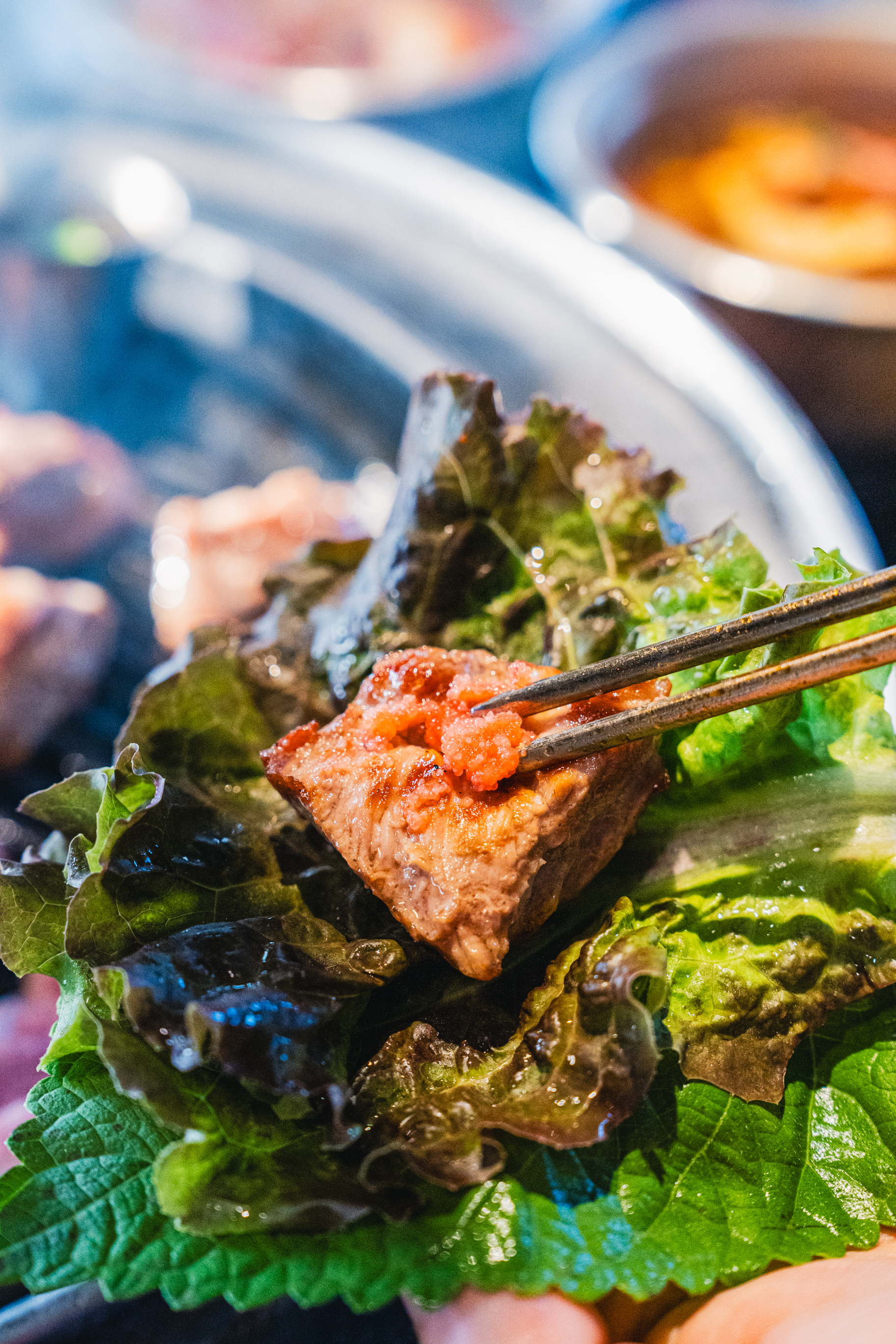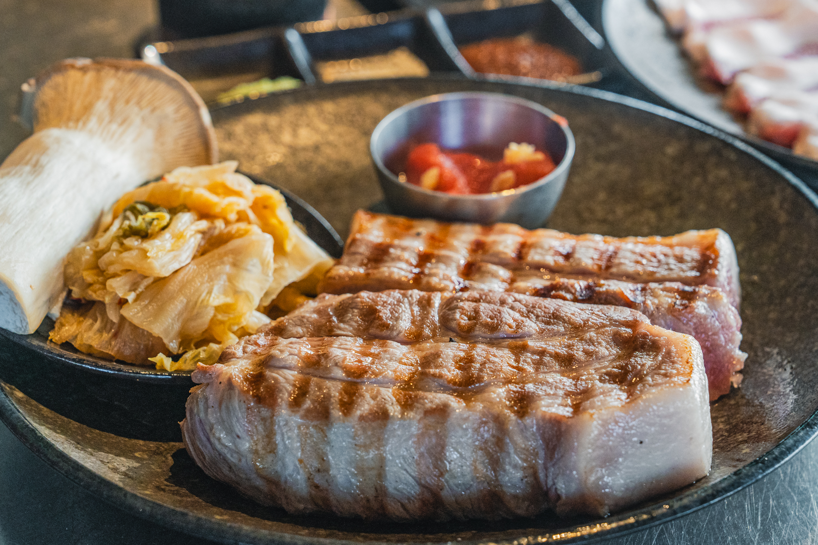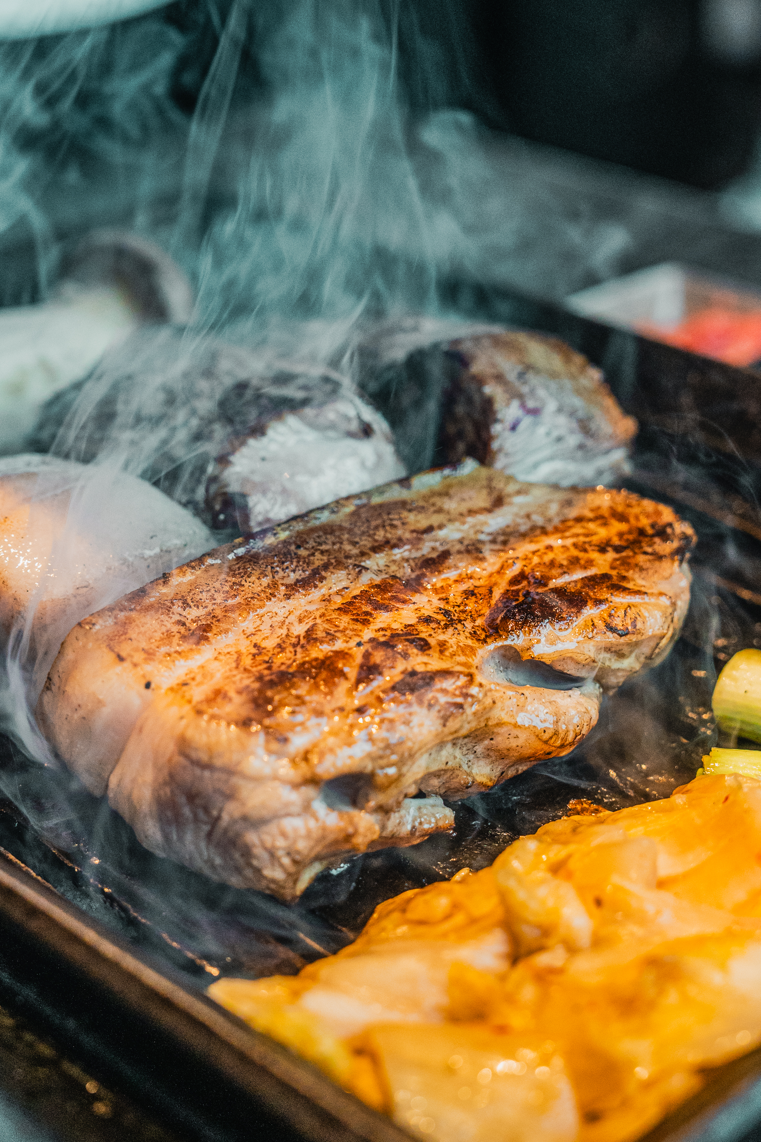 여기선 고기가 80% 이상 초벌된 상태로 테이블에 제공돼요. 그것도 왕겨를 이용해 훈연한 방식이라 풍미가 다르게 살아납니다.
