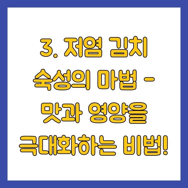 3. 저염 김치 숙성의 마법 - 맛과 영양을 극대화하는 비법!