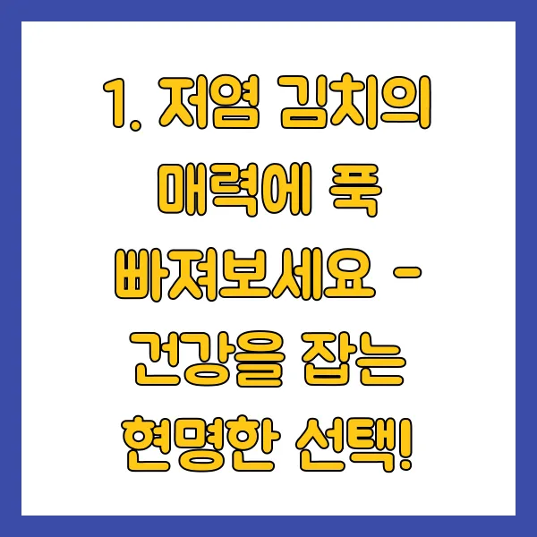 1. 저염 김치의 매력에 푹 빠져보세요 - 건강을 잡는 현명한 선택!