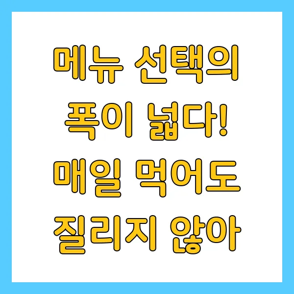 메뉴 선택의 폭이 넓다! 매일 먹어도 질리지 않아 🍽️